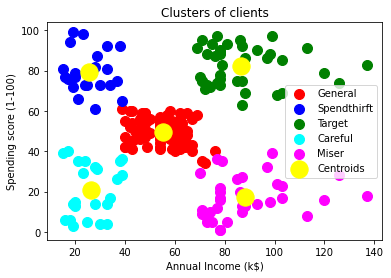 - Used Elbow method via sklearn library in Python to find resulting number of clusters to be 5 thereby highlighting target customers